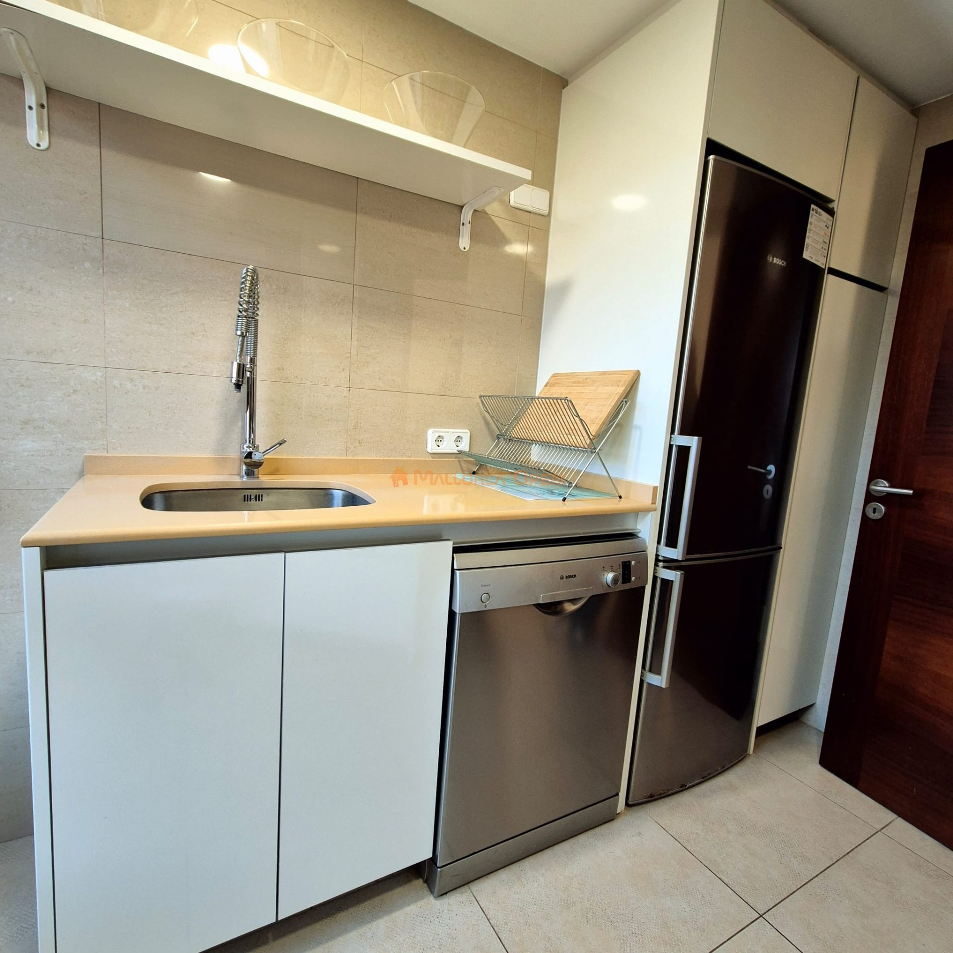 Cocina equipada con acceso a una zona de lavandería independiente.